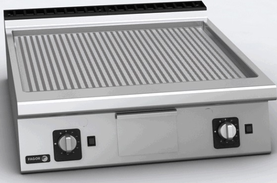 - Produit conçu en acier inox AISI 304, de 2 mm d’épaisseur, plan de travail embouti. Découpe laser, soudure et polissage robotisés facilitant l’assemblage des fonctions, le nettoyage et l’entretien. - Plaque de cuisson fabriquée en acier au carbone de 20 mm d’épaisseur, de mise en température rapide et puissance élevée. - Modèles avec grils lisses, striés ou mixtes (2/3 lisses + 1/3 à rayures). - Versions avec surface en chrome de 50 microns d’épaisseur pour les trois types de grils. - Chauffage électrique par résistances blindées en acier inoxydable; régulation par vanne entre 100 et 300 ºC. - Brûleurs à double tubulure (un brûleur pour les modèles de demi-module, deux brûleurs indépendants pour les modèles d’un module). - Contrôle de la température par robinet thermostatique (entre 100 et 300 °C) pour plaque chromée. - Vanne gaz sur les modèles plaques acier carbone. - Allumage des brûleurs avec train d’étincelles électronique. Ils disposent d’un tube d’accès pour l’allumage manuel. - Gaz: Module avec deux zones de chauffage indépendantes. - Thermostat de sécurité sur les modèles avec contrôle thermostatique. - Grande rapidité de réaction et récupération de la température sur le gril. - Les plaques sont intégrées dans le plan de travail embouti. - Plan de travail embouti avec arêtes arrondies pour une facilité de nettoyage. - Inclinaison de la plaque vers l’avant afin de faciliter la récupération des graisses et des liquides. - Tiroir de récupération d’une capacité allant jusqu’à 2 litres selon les modèles. - Protections latérales et arrières antiéclaboussures en option, facilement démontables. - Protecteur de cheminée en fonte émaillée haute température. - Accès aux composants de la partie avant. - Appareils avec protection de niveau IPX5 contre l'eau. Accessoires optionnels (voir page des accessoires à la fin du chapitre) - Raclette (*). - Protection anti-éclaboussure (en 3 pièces afin de faciliter le nettoyage). Voltage modèles électriques - 400 V 3+N. Consulter pour d'autres voltages.