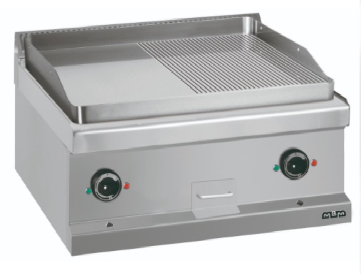 Les plaques grillades de la gamme MAGISTRA 700 sont disponibles en versions acier lisse, rainuré ou mixte ainsi qu’en version chrome en différente largeur (1/2 module ou module entier). L’alimentation est proposée en gaz ou électrique. Toute régulées thermo statiquement.