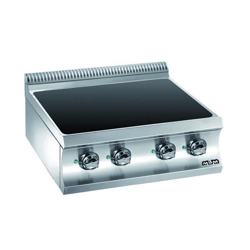 Les plaques vitrocéramique de la gamme MAGISTRA 700 sont disponibles en version 2 ou 4 zones. Les fours comprennent des supports de gril à 3 niveaux et 1 gril est inclus. Fours électriques équipés de 2 éléments chauffants séparés, un sur le ciel (grill) et un sur le fond.