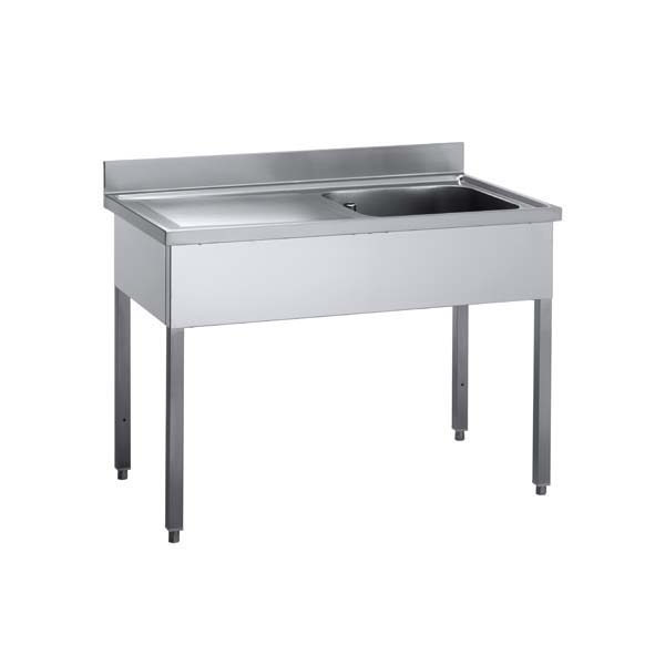 Optez pour cette plonge professionnelle corps en acier inox avec un habillage de 3 faces, de hauteur 850 mm,son plan de travail est équipé de bords pincés anti-ruissellement emboutis, avec un dosseret arrière de hauteur 100 mm, un bac insonorisé et un piétement en tube carré de 40*40 mm dont les pieds sont réglables.
