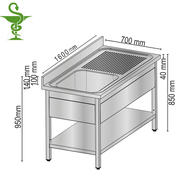 Plonge Médicale 1600 x 700 x 950 mm Bac à Droite MED DOM - Modèle TL16MID1ALG