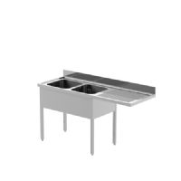 Typology : sur pieds Dimensions (mm) : 1800x700x900 mm Plan de travail en acier avec dosseret de 40 mm d'épaisseur Dosseret h 100 mm Avec panneau de couverture de la cuve