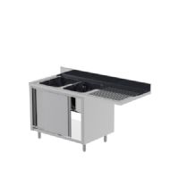 Typology : avec portes coulissantes Dimensions (mm) : 1600x700x850 mm Plan de travail en acier avec dosseret de 40 mm d'épaisseur Dosseret h 100 mm Avec panneau de couverture de la cuve, dos et portes coulissantes