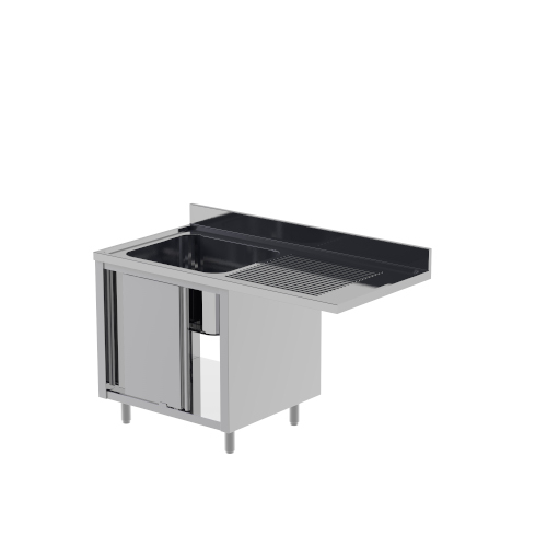 Les nouvelles plonges avec portes coulissantes sont fabriquées avec des côtés et sont équipées de pieds réglables h. 14/18, avec différentes dispositions de cuves et égouttoirs, pour répondre à toutes les exigences. Pour renforcer ultérieurement la structure, outre le cm. 210, les plonges sont fournis avec six pieds en standard. Les portes coulissantes sont amovibles sans outils pour faciliter le nettoyage, conformément aux règles d’hygiène. Les plonges sont équipées de série d’un siphon, d’une bonde et d’un trop-plein.