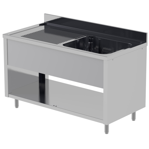 Les nouvelles plonges avec portes coulissantes sont fabriquées avec des côtés et sont équipées de pieds réglables h. 14/18, avec différentes dispositions de cuves et égouttoirs, pour répondre à toutes les exigences. Pour renforcer ultérieurement la structure, outre le cm. 210, les plonges sont fournis avec six pieds en standard. Les portes coulissantes sont amovibles sans outils pour faciliter le nettoyage, conformément aux règles d’hygiène. Les plonges sont équipées de série d’un siphon, d’une bonde et d’un trop-plein.