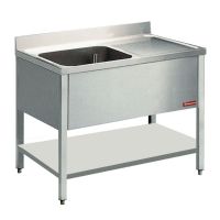 Typology : avec côtés Dimensions (mm) : 1200x700x850 mm Plan de travail en acier avec dosseret de 40 mm d'épaisseur Dosseret h 100 mm Avec cuve cm 40x40 Épaisseur du plan de travail 4 cm