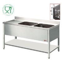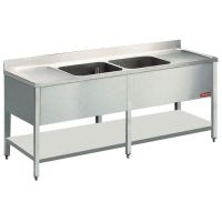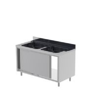Typology : avec portes coulissantes Dimensions (mm) : 1400x700x850 mm Plan de travail en acier avec dosseret de 40 mm d'épaisseur Dosseret h 100 mm Avec panneau de couverture de la cuve et portes coulissantes