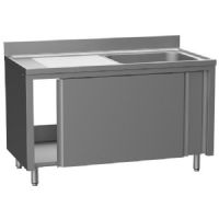 Typology : avec portes coulissantes Dimensions (mm) : 1400x700x850 mm Plan de travail en acier avec dosseret de 40 mm d'épaisseur Dosseret h 100 mm Avec panneau de couverture de la cuve et portes coulissantes