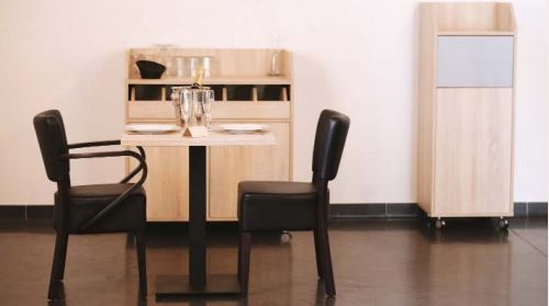 Meuble snacking bas en bois aggloméré, finition mélaminée. Epaisseur 19 mm et chant ABS1 mm assorti.