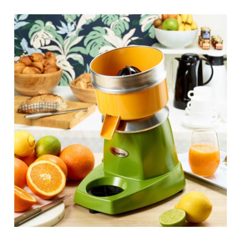 Découvrez le Presse-Agrumes 'Classic' de SANTOS, un appareil conçu pour répondre aux exigences des professionnels exigeants en matière de performance, de durabilité et de simplicité d’utilisation. Ce modèle, avec son socle peint vert élégant, offre une solution idéale pour les cafés, hôtels, restaurants, bars à cocktails et collectivités. Son moteur puissant et ses matériaux de qualité assurent une extraction optimale des jus d'agrumes, pour une boisson fraîche et savoureuse à chaque utilisation.