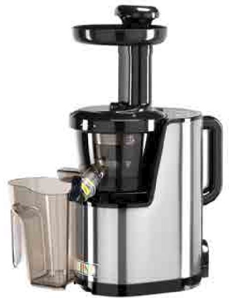 Extracteur à basse vitesse (slow juicer) de jus de fruits et de légumes - structure en acier inox et plastique adaptée aux aliments - expulsion automatique de la pulpe - cuvette des déchets et des jus en plastique - micro-interrupteur de sécurité sur le couvercle - trois filtres en dotation en acier inox (un pour glace).