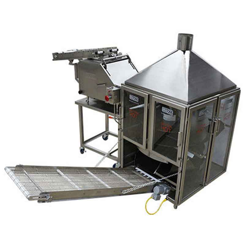Grâce à son système 'Double Drop”, la GRANDEMAX permet un pressage et une cuisson en flux continu, doublant ainsi la productivité par rapport aux modèles classiques. Avec une capacité allant jusqu’à 1 800 unités par heure, elle est parfaitement adaptée aux environnements de production exigeants et aux chaînes automatisées.