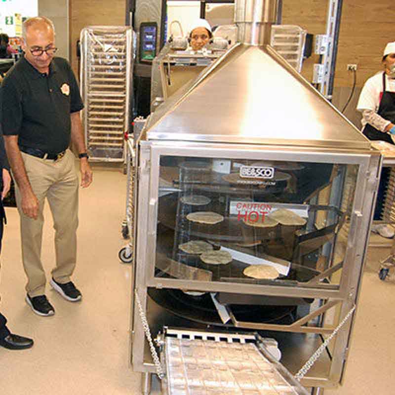 La machine peut produire jusqu’à 1 800 tortillas, naans ou pains plats par heure grâce à son système double flux.