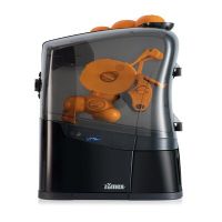 Il ramasse, coupe et presse l'orange automatiquement. il presse 90% du jus tout en laissant le zeste pour éviter l'amertume