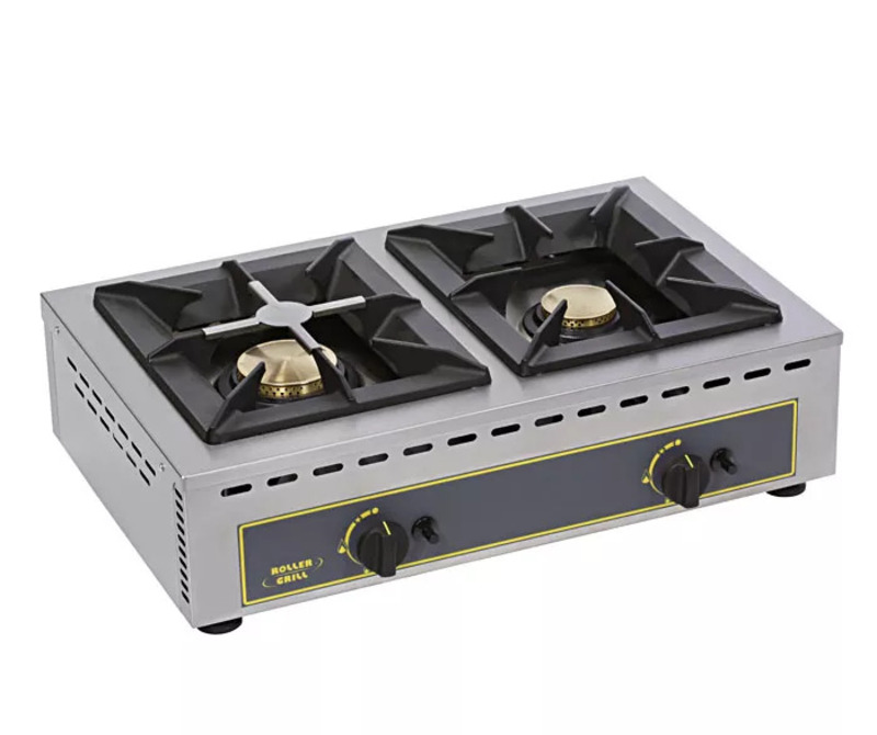 Le réchaud gaz professionnel GST 14 est un modèle double équipé de deux feux de cuisson avec deux grilles en fonte.