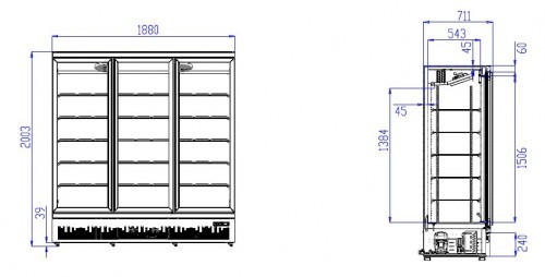 Réfrigérateur 3 portes en verre 1530L avec roues COMBISTEEL