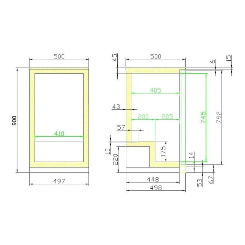 - Dimensions extérieures (LxPxH) : 500 x 500 x 900 mm