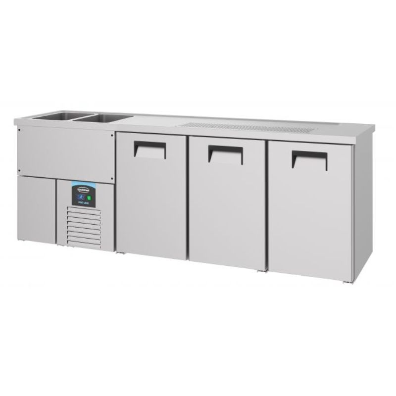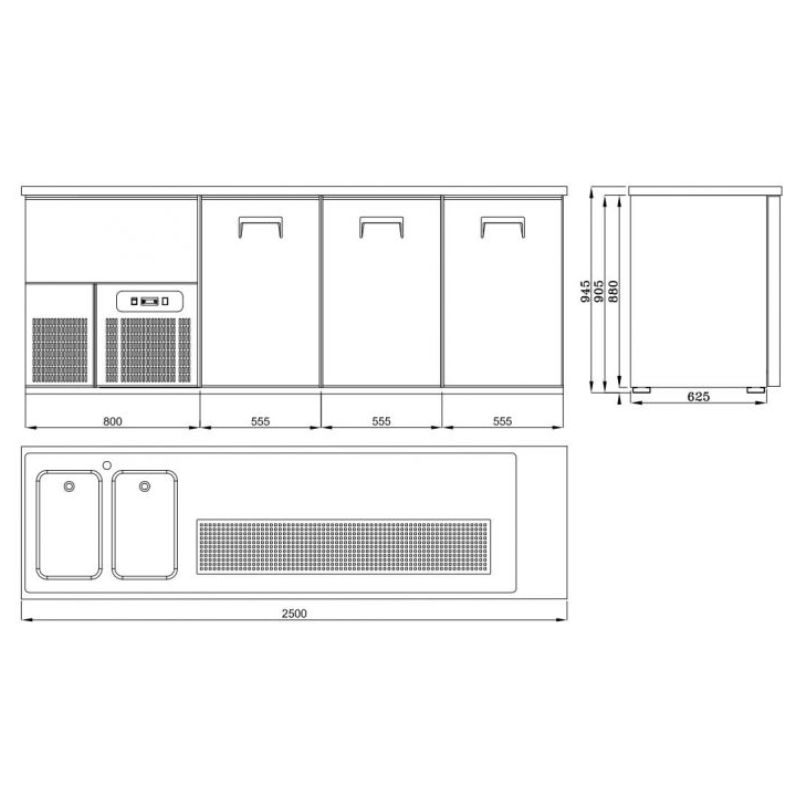 Avec ses dimensions extérieures compactes (2500 x 700 x 950 mm) et son design en acier inoxydable 430, il s’intègre parfaitement dans n’importe quel espace professionnel. Le refroidisseur est équipé d'un système de réfrigération performant utilisant du R290, un réfrigérant écologique et efficace. Sa puissance de 0,46 kW garantit une performance optimale tout en étant économiquement efficace, tandis que son isolation de 60 mm assure une excellente conservation de la température et une faible consommation énergétique.