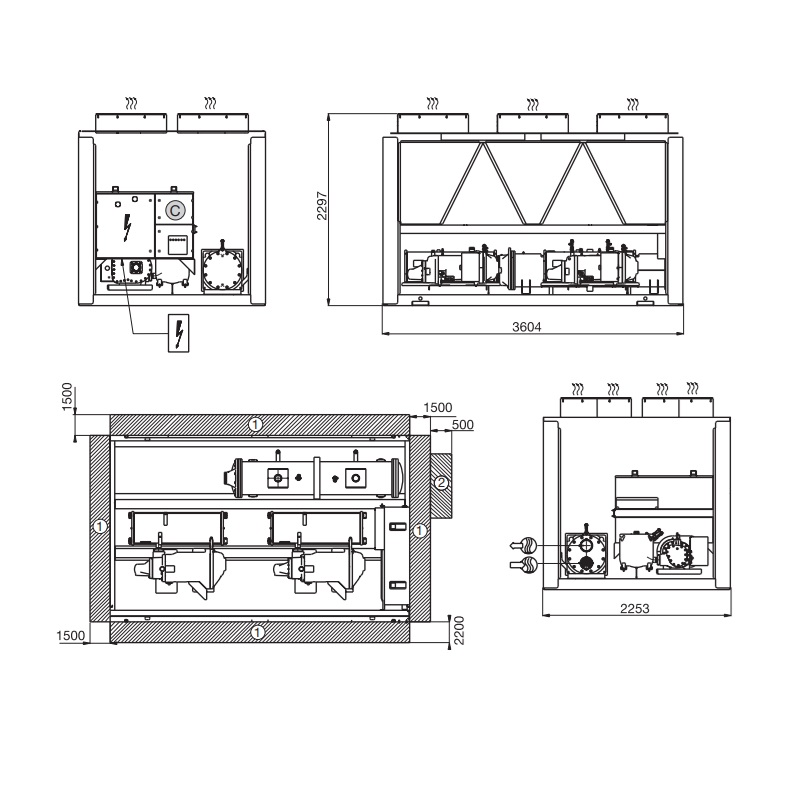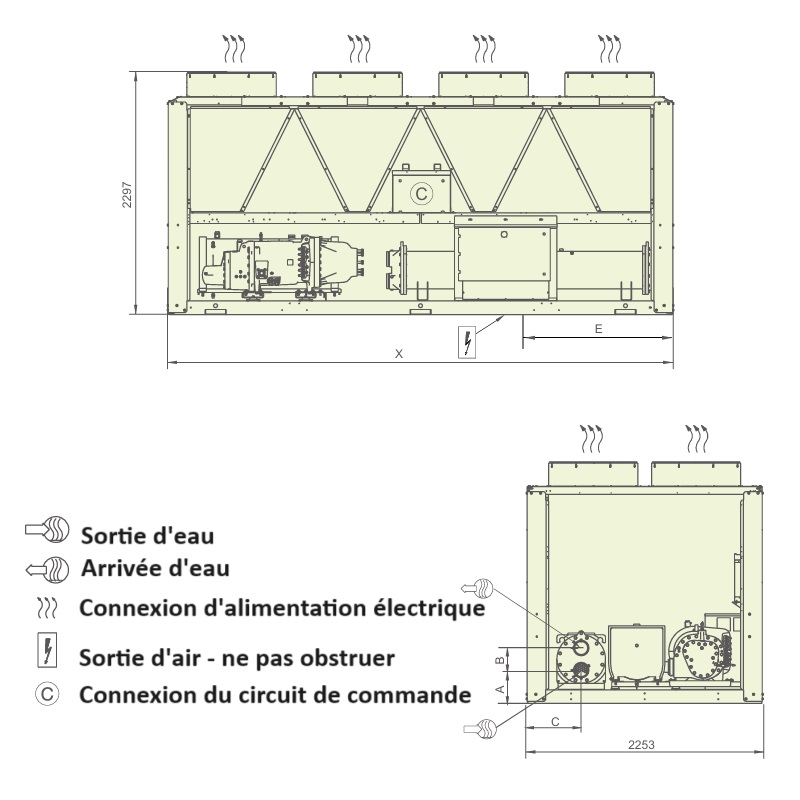 - Composants Fiables : Roulements du moteur du ventilateur lubrifiés en permanence et vannes de service d'aspiration du compresseur pour un fonctionnement sans souci.