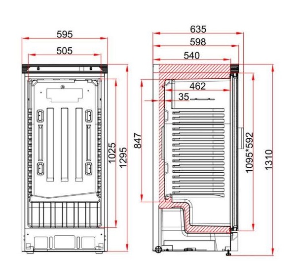 -Dim ext(LxPxH): 595 x 640 x 1315 mm