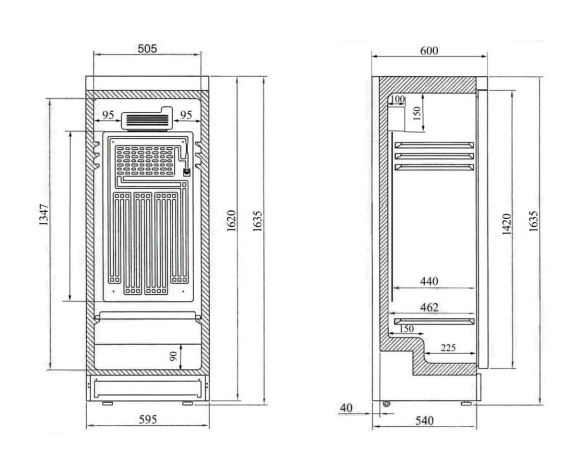 -Dim ext(LxPxH): 595 x 640 x 1635 mm