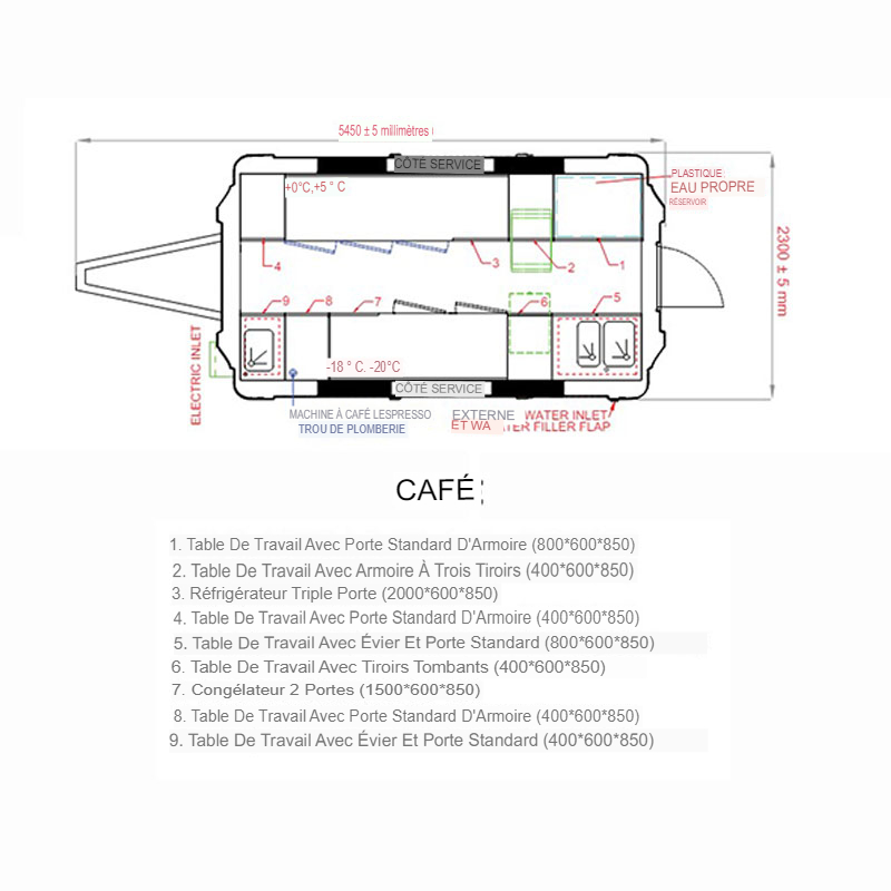 - Dimensions extérieures : 5450 x 2310 x 2730 mm