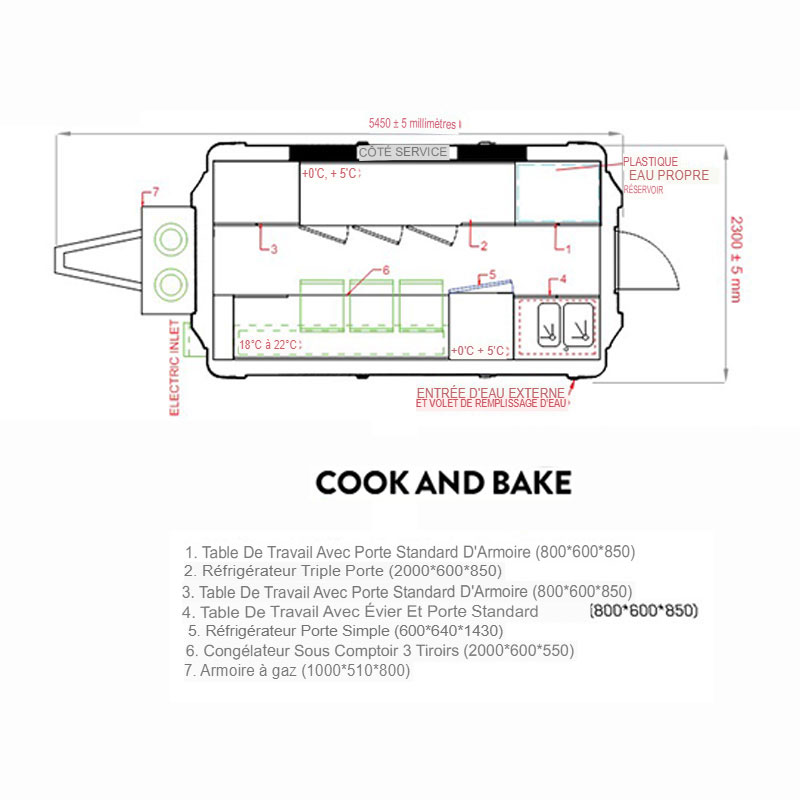 - Dimensions extérieures : 5450 x 2310 x 2730 mm