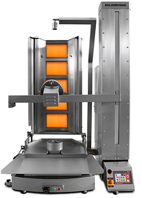 Machine à kebab IDM de type industriel pour surmonter les obstacles, accroitre la productivité, la qualité et le niveau de production indépendamment de l'initiative humaine. A cet effet, IDM Mekatronik a produit de préférence cette machine à kebab pouvant accueillir des kebabs de 130 kg, tout en évaluant les besoins et les demandes du marché au fil du temps.