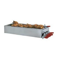 - 8 broches (utile 900 mm) en dotation, chacune pour 6 poulets (1,25 kg)