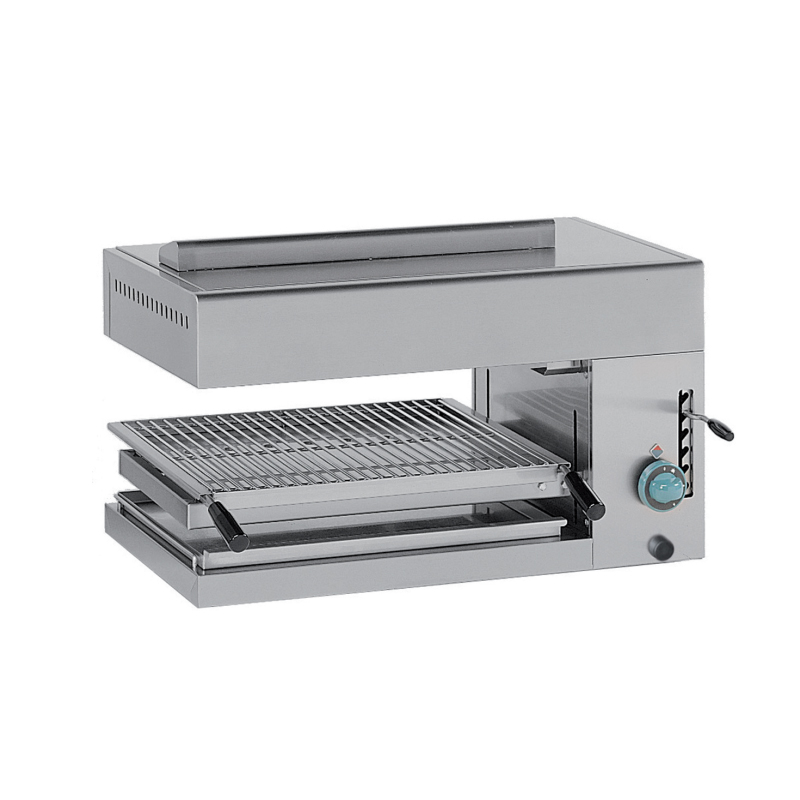 Elément indépendant de notre gamme sont constitués par des fourneaux de faible profondeur et forte puissance, de friteuses électriques à poser, de friteuses gaz et électriques sur coffre et de salamandres.-Base règlable.