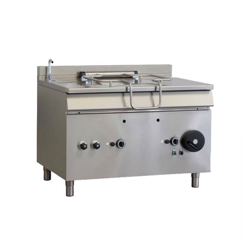 Le mécanisme d’inclinaison manuel facilite le déchargement des aliments, offrant un contrôle précis et réduisant les efforts nécessaires pour manipuler les produits cuits. Sa cuve et son cadre en acier inoxydable assurent durabilité, hygiène et facilité de nettoyage.