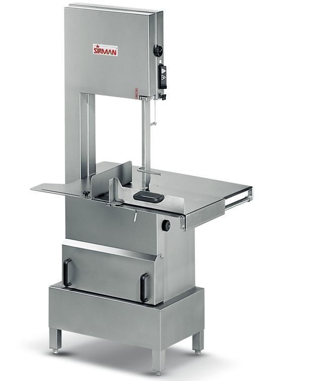 C’est une machine à la ligne moderne, sûre et facile à employer. La structure est en alliage d’aluminium anodisé; corps, porte et plan de trovail sont en acier inox. Elle est complète de pousse-viande, équerre-guide, microinterrupteur de sureté sur le couvercle, protection sur la lame, panneau de commande, poulie supérieure avec réglage de tension. On peut régler la poulie avec le maximum de précision soit en hauteur qu’en inclination horizontale et verticale pour obtenir la plus grande adhérence de la lame. Le nettoyoge est facilité grâce à deux particularités de construction: 1 tous les composants électriques sont placés dans la partie postérieure. 2 Simplement on peut enlever tout la lame, la poulie supérieure et son support et abtenir une surface lisse et sans encombrements.
