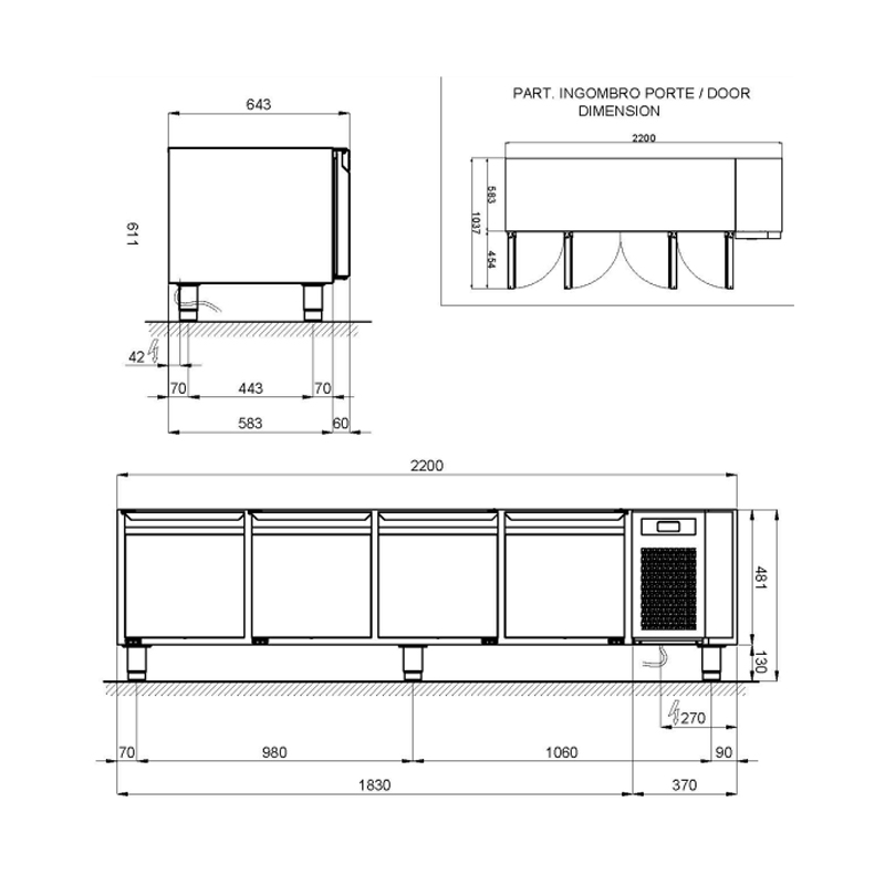 - 4 grilles GN 1/1 (une par porte)Applications Idéales