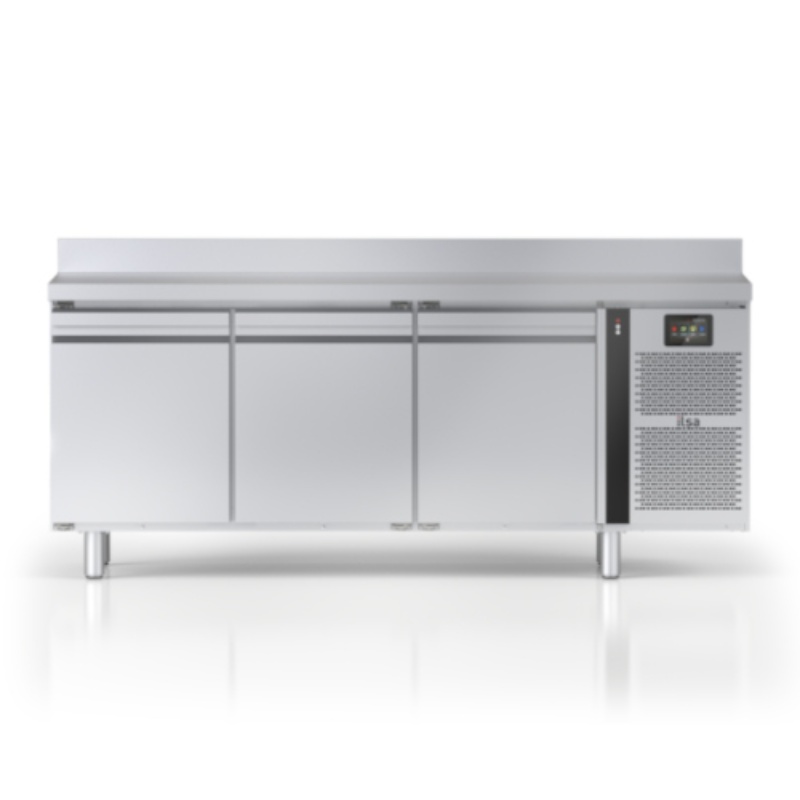Finition extérieure scotch-brite satinée ; épaisseur d'isolation de 60 mm pour le corps et de 50 mm pour les portes avec mousse à haute densité (40 kg/mc) ; pieds en acier inox réglables en hauteur h. 140/230 mm ; chambre froide avec coins arrondis pour un meilleur nettoyage intérieur ; portes à fermeture automatique avec arrêt à 95° ; joints magnétiques des portes facilement échangeables ; système d'humidification et de déshumidification automatique à contrôle uniforme ; groupe frigorifique monobloc amovible pour faciliter l'entretien ; système de ventilation à l'arrière pour une température intérieure parfaite et homogène ; dégivrage par gaz chauds et évaporation automatique de l'eau de condensation ; poignées ergonomiques ; filtre de condenseur en acier inox de série ; fond extérieur en acier inox en option ; alimentation électrique 230V/50Hz de série ; sans CFC ni HCFC ; charnières de porte supérieure et inférieure fixées à l'avant du corps (interchangeables sans devoir démonter le plan de travail) ; portes réversibles.