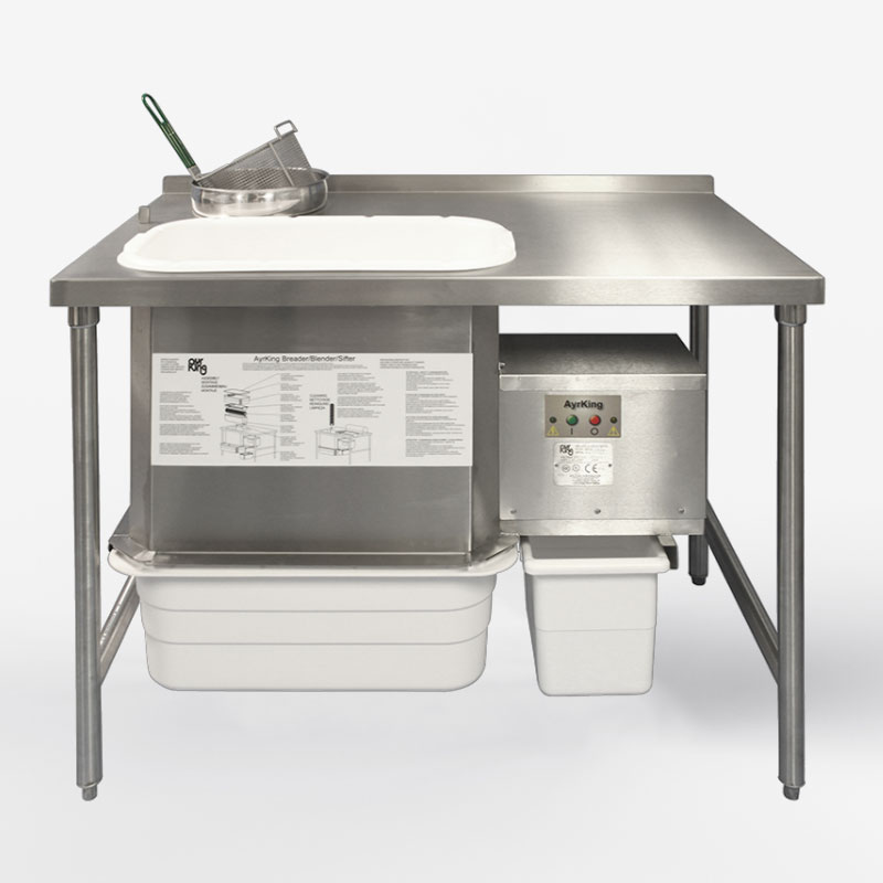 La table à paner électrique motorisée AyrKing (Réf. BBSU4830) est conçue pour répondre aux exigences élevées des boulangeries et pâtisseries professionnelles. Grâce à son système manuel avec tamisage et mélangeur intégrés, elle optimise le process de panure tout en garantissant un environnement de travail propre, rapide et ergonomique.