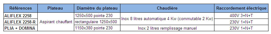 - Équipée d'une chaudière vapeur en inox 8 litres, alimentation automatique par surpresseur (réseau d'eau ou réservoir), elle dispose d'une réserve de vapeur suffisante pour alimenter 2 postes de travail en simultané.