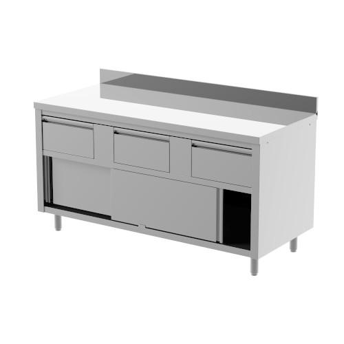 Typology : avec portes coulissantes et tiroirs Dimensions (mm) : 1000 x 700 x 890 mm Plan de travail en acier avec dosseret fermé de 40 mm d'épaisseur Dosseret h 100 mm Avec portes coulissantes, dos et tiroirs Épaisseur du plan de travail 4 cm