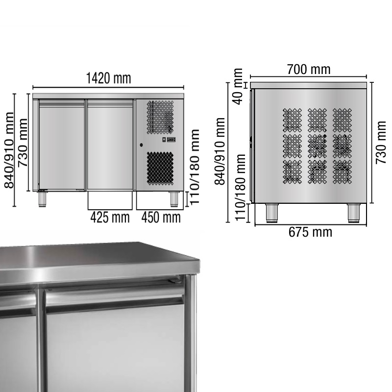 Le panneau de commande électronique, équipé de sondes NTC pour une surveillance précise de la température, vous permet de contrôler facilement les conditions de congélation. Les portes à fermeture automatique avec joint magnétique assurent une isolation efficace, contribuant ainsi à réduire la consommation d'énergie et à maintenir une température stable à l'intérieur de la table congélateur.
