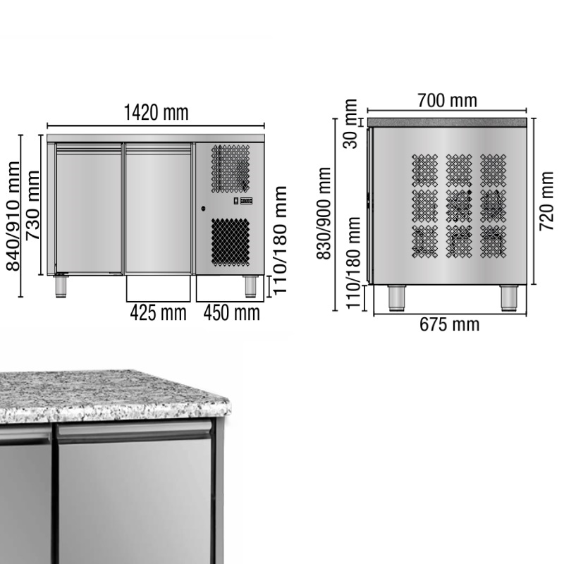 Table de congélation INOX 2 portes GN 1/1 plan de travail en Granit -18°C/-22°C: Optez pour la Performance et la Durabilité