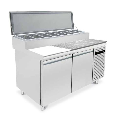 -Kit réfrigéré surélevé sur le plan de travail avec couvercle isotherme pour éviter de devoir stocker les bacs GN 1/3 après une utilisation quotidienne.
