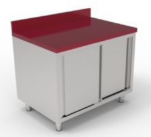 Typology : sur pieds Dimensions (mm) : 1400 x 700 x 850 mm Plan de travail en acier avec dosseret de 40 mm d'épaisseur Dosseret h 100 mm Épaisseur du plan de travail 4 cm