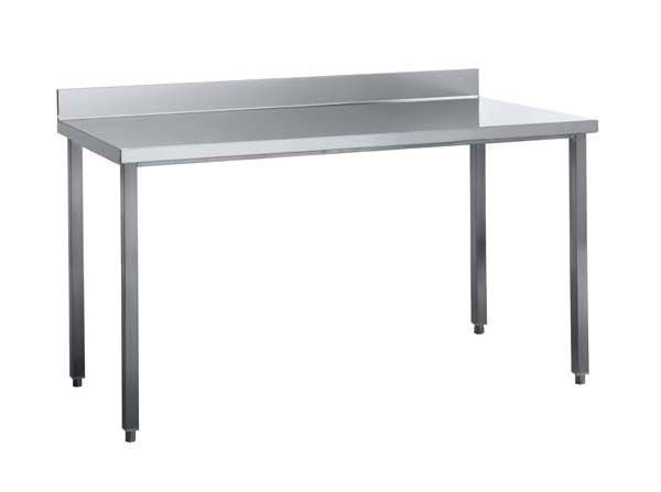 Profitez de cette table démontable avec dosseret en inox alimentaire indispensable pour les professionnels de la restauration, snack, hôtellerie... Sa dimension est de 800 à 2000 mm et de profondeur 600. La tablette supérieure est en inox avec des bords tombants de 40 mm et retours de 15 mm, renforcée par de l'aggloméré stratifié blanc de 18 mm. Les profilés longitudinaux pré-percés sont soudés sur la tablette supérieure. La tablette inférieure est en inox avec des bords tombants de 40 mm et de retours de 15 mm, renforcée par un oméga en inox sur toute la longueur, elle est clipsée sur les deux tubes latéraux de 20x20 mm. Les pieds sont en tubes carrés de 40 mm pré-percés, reliés latéralement entre eux par des profilés en inox, à 200 mm du sol, renforcés par des tubes inox de 20x20 mm posés sur des embouts réglables de 65 mm en inox.