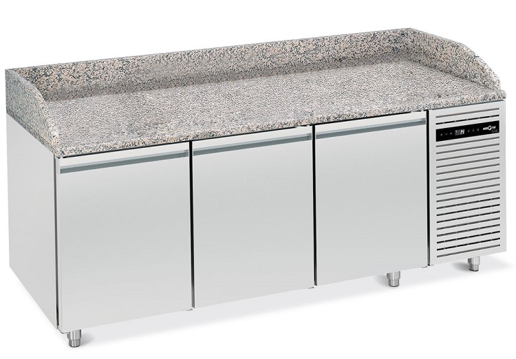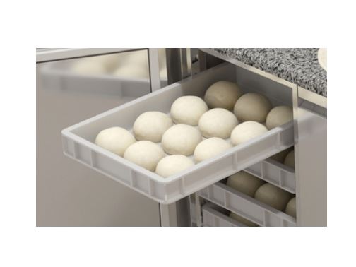 -La Table Pizza Positive L6 est définitivement la table du pizzaiolo : sous le grand plan de travail en granit, elle dispose de compartiments 40x60 pour le stockage de la pâte à pizza près de la zone de préparation. -L’humidité relative élevée permet d’éviter le dessèchement de la pâte.