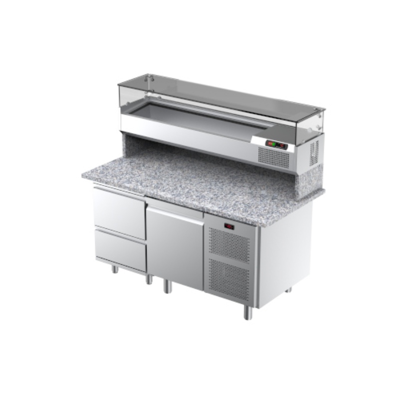ILSA a développé une gamme complète d'équipements pour les pizzerias, conçus pour répondre aux besoins de flexibilité dans la composition des postes de travail et d'optimisation de l'espace, tout en garantissant la sécurité du stockage des ingrédients. La ligne se compose de tables de préparation d'une profondeur de 80 cm qui peuvent être personnalisées avec des éléments neutres et réfrigérés permettant de nombreuses combinaisons, pour une organisation du travail basée sur des principes de fonctionnalité et d'efficacité. Les éléments sont entièrement fabriqués en acier inox AISI 304 Cr- Ni 18/10, entièrement conformes aux normes d'hygiène et montés sur des pieds réglables. Les plans de travail sont en granit de Sardaigne ou en acier inox AISI 304 Cr-Ni 18/10.