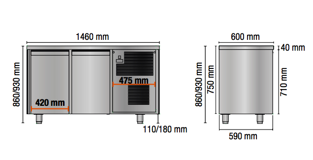 -Dimensions (LxPxH): 1460x600x860/930 mm