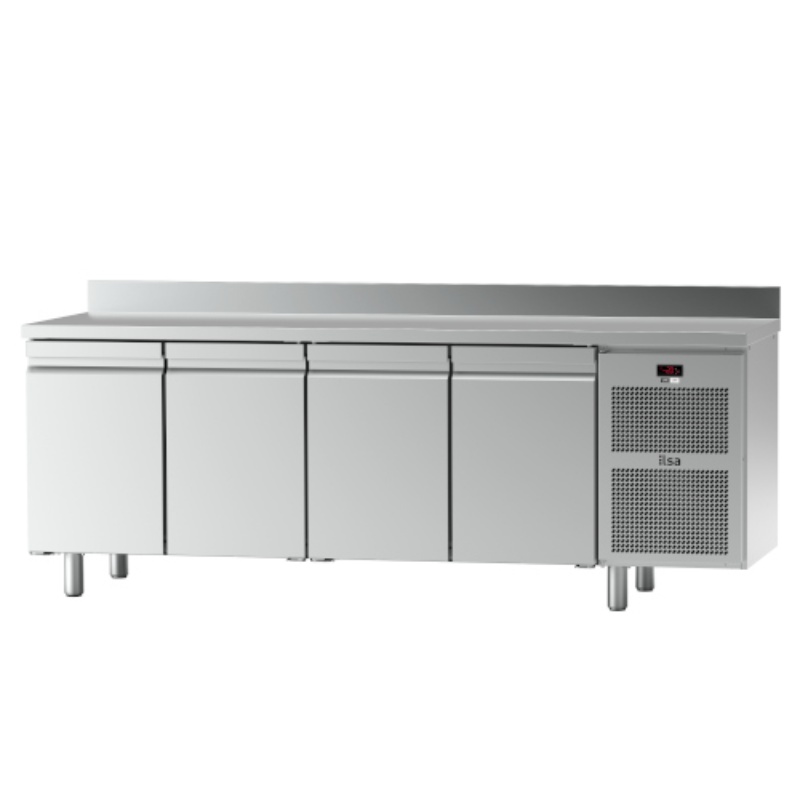 Les nouvelles tables réfrigérées ESSENTIAL sont construites avec une structure monocoque en acier inox AISI 304 ; finition extérieure scotch-brite satinée ; épaisseur d'isolation de 50 mm pour le corps et de 50 mm pour les portes avec mousse à haute densité (40 kg/mc) ; dos extérieur en acier inox AISI 304 scotch-brite ; pieds en acier inox réglables en hauteur h. 140/230 mm ; chambre froide avec coins arrondis pour un meilleur nettoyage intérieur ; portes à fermeture automatique avec arrêt à 95° ; joints magnétiques des portes et des tiroirs facilement échangeables ; groupe frigorifique monobloc ;dégivrage automatique et évaporation automatique de l'eau de condensation ; poignées ergonomiques ; alimentation électrique standard 230V/50Hz ; gaz réfrigérant écologique R290.