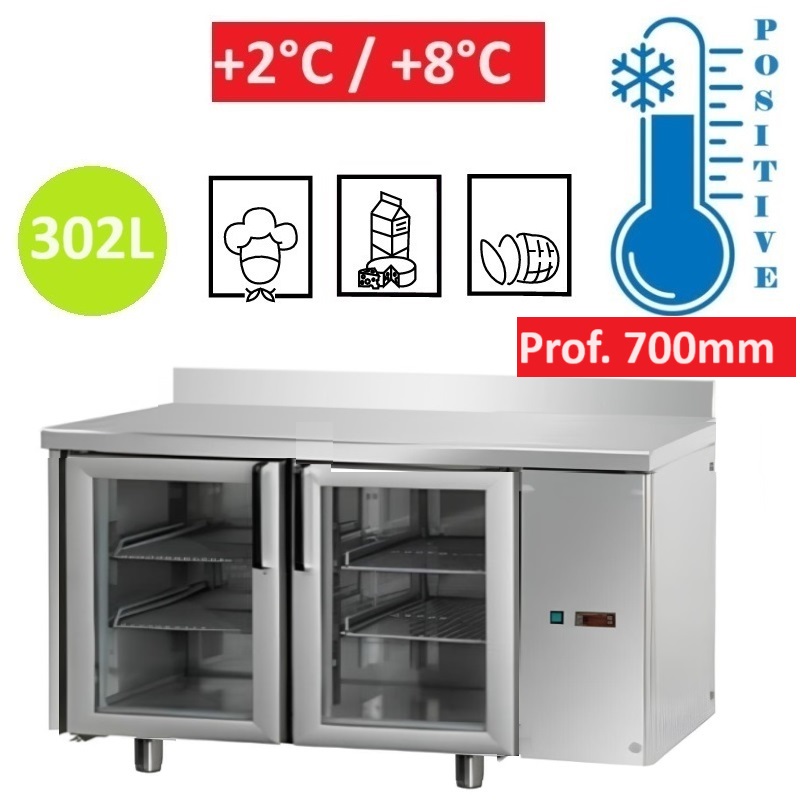 Table Réfrigérée 2 Portes Vitrées GN 1/1 avec Dosseret : Votre Alliée pour une Conservation Optimal