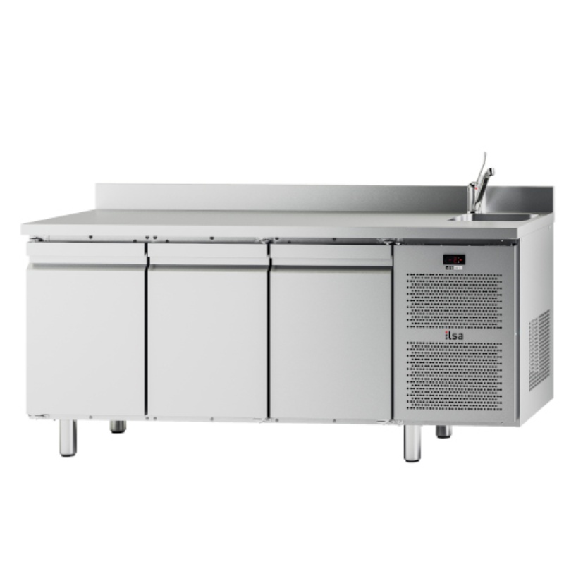 Les nouvelles tables réfrigérées NEOS sont construites avec une structure monocoque en acier inox AISI 304. Finition extérieure scotch-brite satinée ; épaisseur d'isolation de 60 mm pour le corps et de 50 mm pour les portes avec mousse à haute densité (40 kg/mc) ; dos extérieur en tôle galvanisée, en option en acier inox scotch-brite AISI 304 ; pieds en acier inox réglables en hauteur h. 140/230 mm ; chambre froide avec coins arrondis pour un meilleur nettoyage intérieur ; portes à fermeture automatique avec arrêt à 95° ; joints magnétiques des portes et des tiroirs facilement remplaçables ; groupe frigorifique monobloc ; système de ventilation canalisée à l'arrière pour une température interne parfaitement homogène ; dégivrage par gaz chauds et évaporation automatique de l'eau de condensation ; poignées ergonomiques ; compartiment technique en option à gauche dans les deux versions ; alimentation électrique standard 230V/50Hz ; gaz réfrigérant écologique R290 ; charnières supérieures et inférieures des portes fixées à l'avant du corps (interchangeables sans devoir démonter le plan de travail) ; portes réversibles.