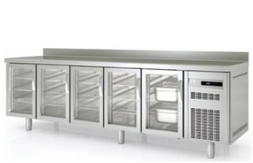 Meuble réfrigéré positif 5 portes vitrées GN 1/1 avec dosseret CORECO