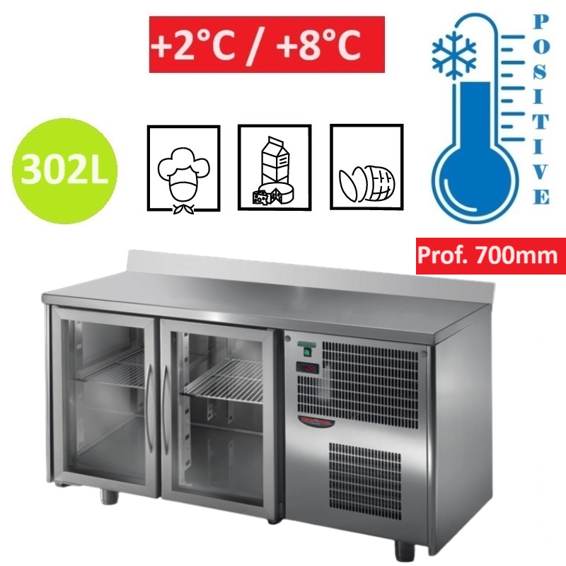 Table Réfrigérée INOX 2 Portes Vitrées GN 1/1 avec Dosseret : La Solution Polyvalente pour une Conservation Optimale